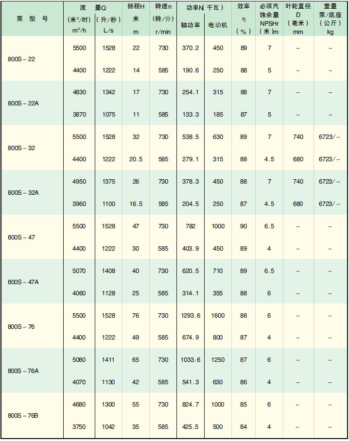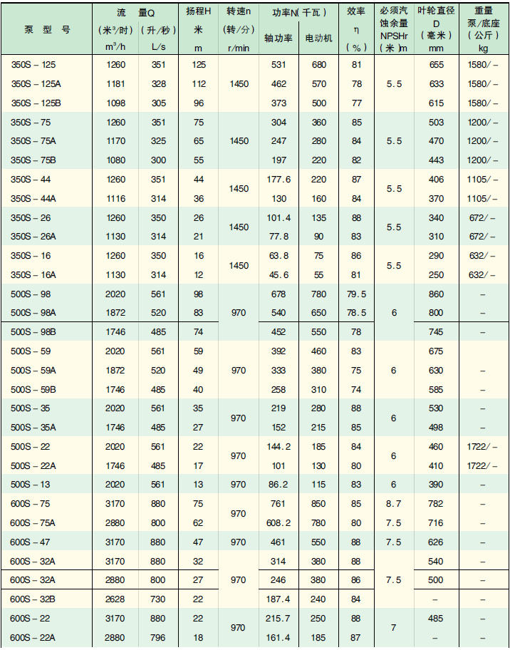 S型泵主要由泵體、泵蓋、軸、葉輪、密封環(huán)、軸套、軸承部件等組成。S 型單級(jí)雙吸離心泵供抽送溫度低于80℃ 的清水或物理化學(xué)類(lèi)似于水的其它液體之用。 S 系列單級(jí)雙吸離心泵主要適用于自來(lái)水廠、空調(diào)循環(huán)用水、建筑供水、灌溉、排水泵站、電站、工業(yè)供水系統(tǒng)、消防系統(tǒng)、船舶工業(yè)等輸送液體的場(chǎng)合。